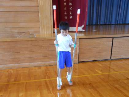目当てのカードには、「5歩歩けるようになる!」と書いていた子たちが、今日は、「49歩」「55歩」と、一気に目当てを達成し、「みんなにも見てもらいたい!」と語っていました。