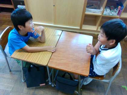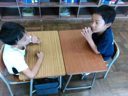 国語科「すきなもの、なあに」では、自分の好きなものを伝えたり、友達に質問したりしました。