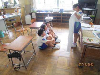 国語科「仕事のくふう、見つけたよ」 公開日 2023/07/14 更新日 2023/07/14 3年生 国語科では、自分で調べた仕事の工夫を模造紙にまとめ、発表会をしました。相手にわかりやすいように、まとめ方を工夫しました。