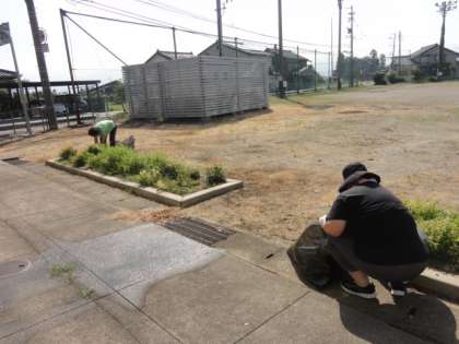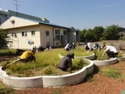 MTガーデンやグラウンドの花壇の草むしりを教職員で行いました。気温の高い中の作業は大変で、汗びっしょりになりました。花壇がきれいになり、すっきりとした環境で2学期を迎えられそうです。