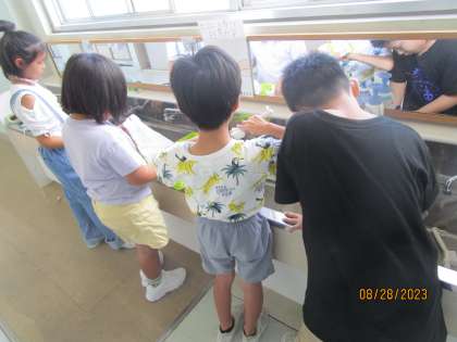 長い夏休みの間に汚れた水槽をきれいにしました。ぴかぴかになった水槽を見て、自然と笑顔になっていました。