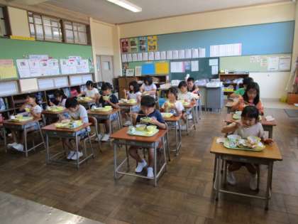 2学期がスタートしています。廊下には、一人一人が夏休みにじっくりと取り組んだ作品が並んでいます。また、今日から給食がスタートしました。子供たちは、久しぶりの給食に「おいしい」と話していました。しっかりと食べて暑さを乗り切ってほしいです。