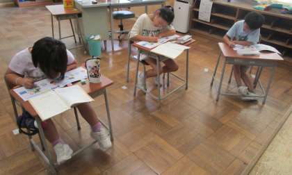 ローマ字(3年生) 公開日 2023/09/19 更新日 2023/09/19 3年生 国語科の学習で「ローマ字」の学習をしています。ようやく学習するローマ字にわくわくしながら、ワークに取り組んでいます。