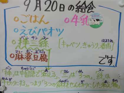 9月20日(水)の給食