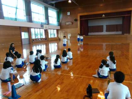 体育科では、なわとび発表会に向けて準備を進めています。今日は、各グループが考えた発表内容を伝え合いました。