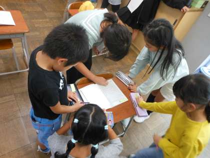 ロング昼休憩の時間に、2回目のチャレンジノートツアーを行いました。今回は、友達のチャレンジノートの取組を見て、すてきだなと思ったことを付箋に書いて貼りました。友達からコメントをもらって、うれしそうな笑顔が見られました。他の友達の取組のよさを、自分にも生かしてほしいと思います。