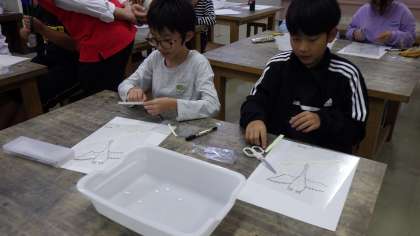 今日は、サイエンスカーが学校にやって来ました。3・4年生は、星の学習をしました。夏の大三角を観察するためのシートを手作りし、観察するポイントを教わりました。晴れた日の夜、実際にシートを使って星を観察するのが楽しみになりました。