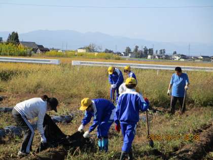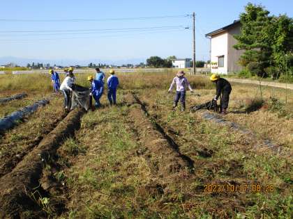 20日の芋掘り集会に向けて、6年生がサツマイモ畑のマルチを外してくれました。おいしいサツマイモがたくさん収穫できるといいですね。6年生さん、ありがとう。