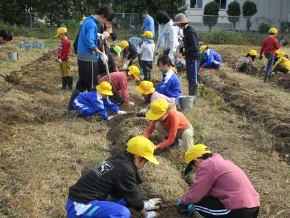 今朝は、全校で芋掘りをしました。大きいサツマイモ、おもしろい形のサツマイモなど、たくさん収穫できました。子供たちからは歓声が上がり、笑顔がいっぱいでした。苗の植え方を教えていただいたグリーンパワーの方に、お礼の言葉を伝えました。ありがとうございました。