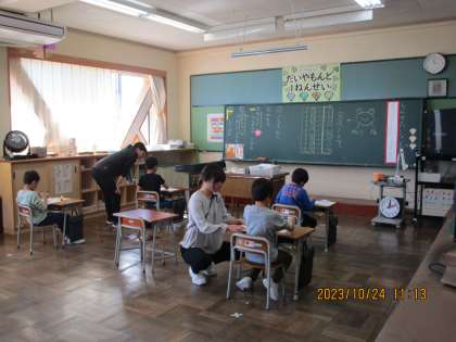 1年生は、国語科の学習で文づくりをしていました。2年生は、図画工作科の学習で曲がるストローを使って動く仕組みを工夫していました。4年生は、お楽しみ会の内容を決める話合いをしていました。