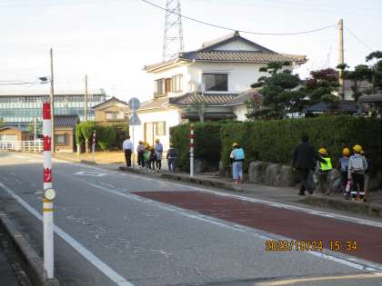 滑川市赤浜付近で熊と思われる動物の目撃情報がありました。集団でかたまって歩くことや遭遇したときの行動等の安全指導を行った後、教員が方面別に付き添い、集団下校を行いました。
