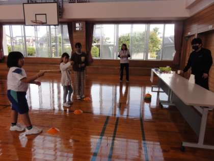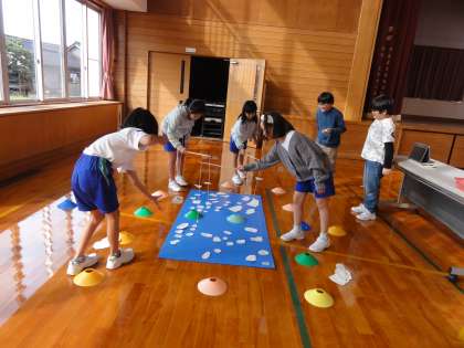 6年生の子供たちが中心となって計画し、楽しい集会が行われました。輪投げや射的、魚釣り等、手作りのゲームに、どの子供も笑顔で楽しんでいました。