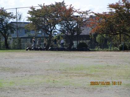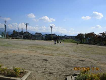 気持ちよく空が晴れ渡っています。子供たちは、元気にグラウンドで遊んでいます。