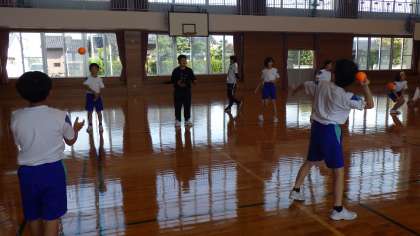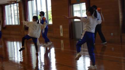 富山体育協会スポーツ指導員の方に、ソフトボール投げのポイントを指導していただきました。順を追って練習していくうちに、どんどん体全体を大きく使って投げられるようになってきました。投げる距離が伸びて嬉しそうでした。