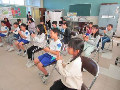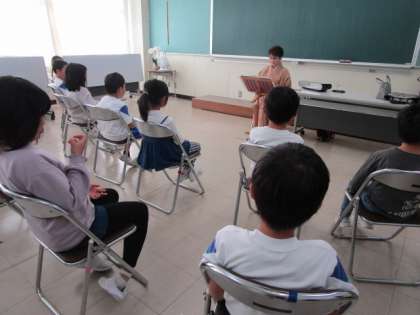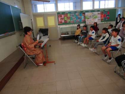 鈴木優子先生による読み聞かせがありました。鈴木先生の声や音を自在に操って語られる言葉に、子供たちはあるときは笑顔になり、あるときはしんみりとしたりしていました。「富山の言葉で話された大きなかぶがおもしろかったです。」「声をいろいろ変えていてすごいと思いました。」「自分たちの読んだスイミーがあったのでなつかしかったです。」目に見えないつながりが生まれました。