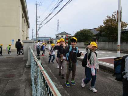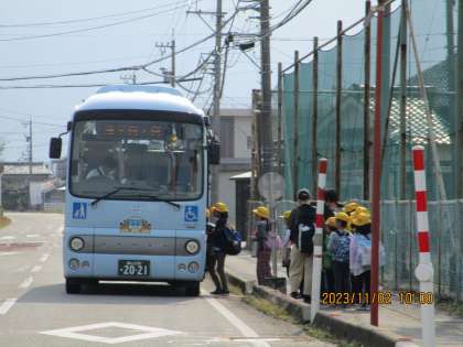今日は、1、2年生の校外学習の日です。コミュニティバスに乗って元気に出発しました。