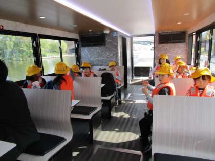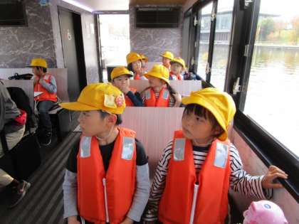 富岩運河環水公園に移動して、お弁当を食べてから、富岩水上ラインに乗りました。子供たちは、窓から見える鳥や、景色に大喜びでした。