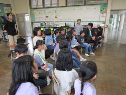 読み聞かせがありました。実際に本のお話と一緒の本物を用意して下っていました。たとえばまつぼっくりマジックでは、まつぼっくりを本当に入れた瓶を持ってきてくださいました。子供たちは、本当に落ちないかなとどきどきしながら、見ていました。予想通り、落ちないのを見て、「じゃ、水を入れたら落ちるのかな?」と言っていました。また、「おほしさまのちいさいおうち」では、お星様が本当にあるのかなと言ってりんごを横に切ったものをリンゴを見せてくださいました。「星があった!」と目を輝かせていました。他の色のリンゴでも見せてくださいました。そのリンゴにも星があるのを見ていました。その後の振り返りでもたくさんの手が挙がって感想を言いたそうでした。