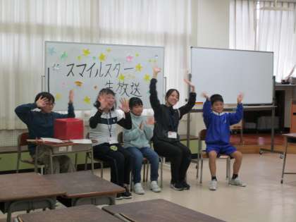 今日の「スマイルスター生放送」の様子です。みんな笑顔いっぱいですね。