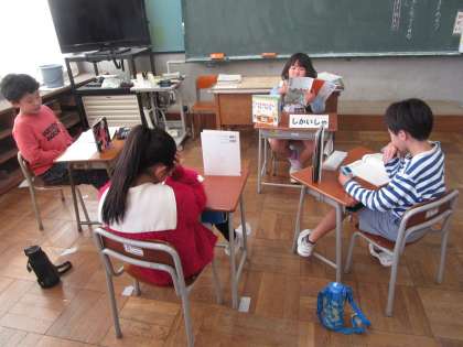 国語科の授業で、話し合いを行いました。司会者、記録者、時間と3つの役に分かれ、話し合いを進めました。