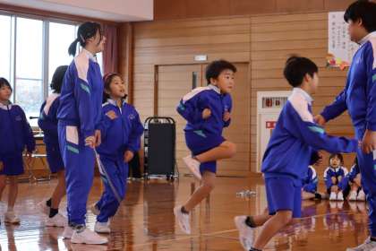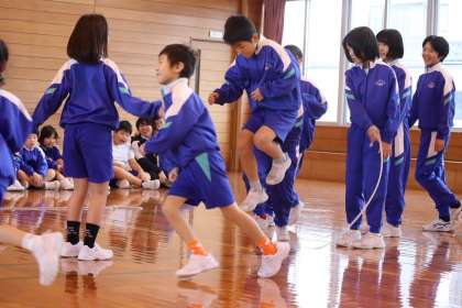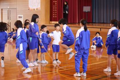 全校なわとびの様子です。目標の756回と歴代記録の781回を大幅に超え、837回という大記録を達成しました。練習の成果を発揮することができ、子供たちは満足した表情でした。大きな声援をありがとうございました。