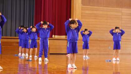 なわとび発表会に向けて、1・2・3年生の子供たちは、9月から一緒に練習してきました。3年生はリーダーとして活躍し、1・2年生はどうしたらうまくなるかよく考えて活動してきました。「心おどる体操」では、最後のポーズを一人一人が自分で考えました。