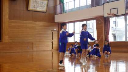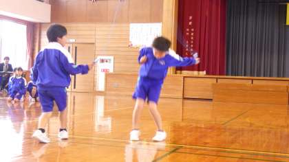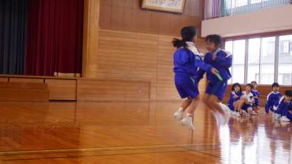 ペア跳びは、異学年でペアになり、技を披露しました。異学年で練習することで、今までよりも親しくなりました。