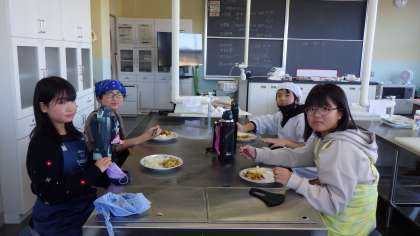 じゃがいも、玉ねぎ、ベーコンを使ったおかずを作りました。グループでメニューや作り方を相談し、手際よく作ることができました。出来上がった炒め物や粉ふきいもなどは、どれもとてもおいしかったようです。