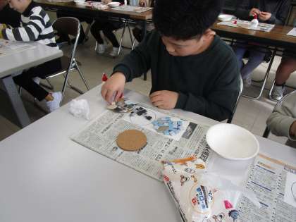 ものづくり講座があり、タイルアートで、コースターを作りました。自分で好きなタイルを選び、配置を考えました。とても楽しく、活動に参加できました。