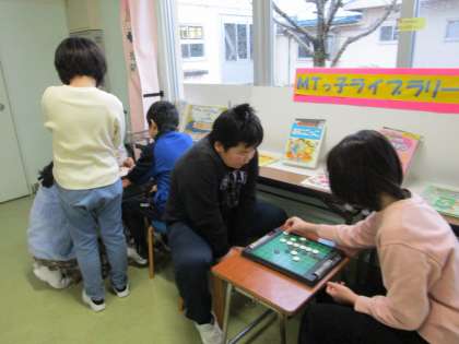 登校した子供たちは、MTっ子ライブラリー前で、オセロや将棋を楽しんでいました。