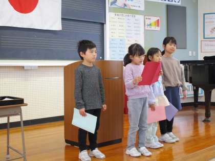 今日は、とても気温が低く寒さが厳しいので、Meetで第2学期の終業式を行いました。2年生と6年生ががんばったことを発表しました。