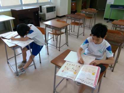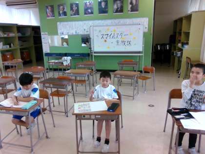 音楽科では、絵描き歌「さんちゃん」を歌いながら絵を描きました。子供たちは、楽しみながら歌っていました。