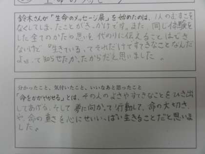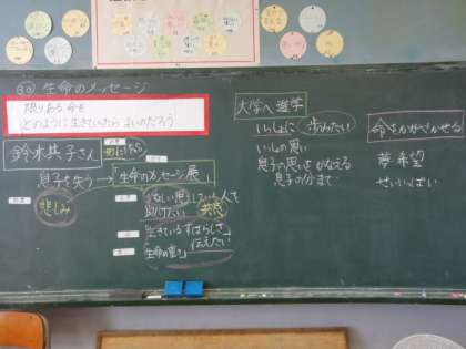 6年生では、「命をかがやかせる」とは、どのようなことかを考えました。子供たちは、精一杯生きることの大切さについて見つめていました。