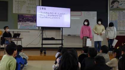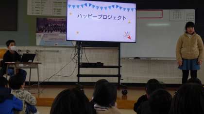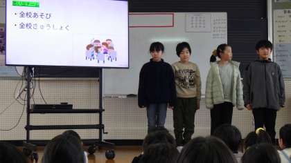 卒業を祝うプロジェクトについての児童総会を行いました。4年生が考えたプロジェクトを、1〜3年生に説明しました。各学年へのお願いも、快く引き受けてもらうことができました。
