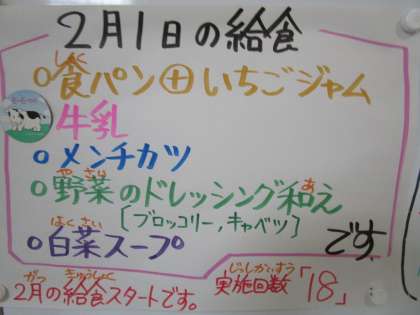 2月1日(木)の給食です。