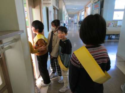 2月14日に、3・4・6年生がスキー学習に行きます。その間、2年生は学校のリーダーとして、各委員会の仕事をすることにしました。まず、朝、挨拶運動をしました。上級生から教えてもらったことを実際にやってみると、いろいろなことが分かったようです。挨拶運動に取り組んだ子供たちの中には、人を目の前にすると緊張すると話している子供もいました。明日は、きっと元気よく挨拶ができると思います。