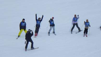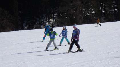 快晴の中、スキーを楽しむことができました。曲がる、止まる、急な斜面もスムーズに滑る等、それぞれの目当てをもって取り組み、できることが増えました。
