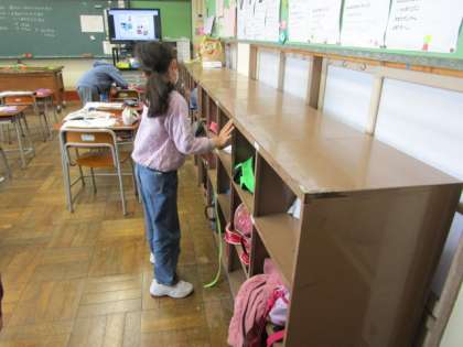 算数では、長いもののの長さを測っています。今日は、1mの長さを作り、1mを探しました。