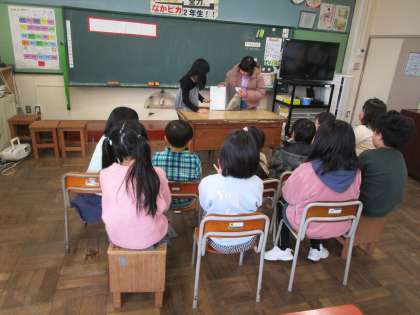 読み聞かせ(3年生) 公開日 2024/02/28 更新日 2024/02/28 3年生 環境委員会さんが、計画してくれた「読み聞かせ」に参加しました。4・6年生が読んでくれたのを、真剣に聞いていました。