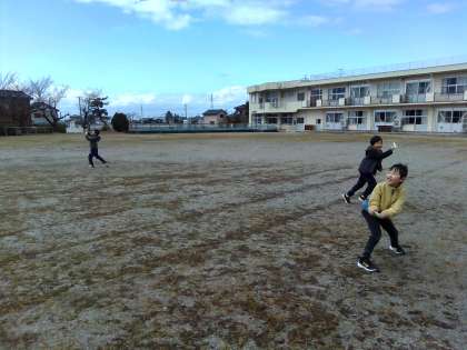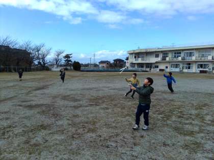 生活科「ふゆをたのしもう」では、凧揚げをしました。子供たちは、冬の風の強さを感じながら凧揚げを楽しみ、授業が終わる頃には上手く操れるようになっていました。
