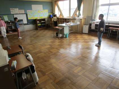 3学期の最後の学習で、集会活動を行いました。伝言ゲームやマス鬼ごっこ、絵しりとりで遊びました。最後は、1年間を振り返って、スライドショーを見ました。