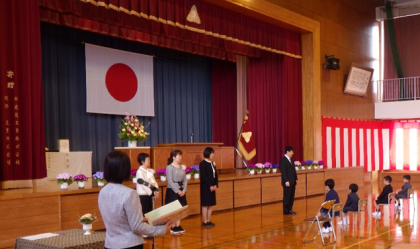 4月5日に入学式を行いました。入学式では、1年生の子供たちは、姿勢よくしっかりと話を聞いていました。教室では、担任の先生からの話をにこやかな表情で聞き、これから始まる小学校生活を楽しみしているようでした。