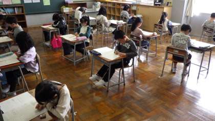 学力調査を行いました。国語も算数も、どちらの教科も真剣に行いました。