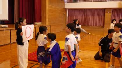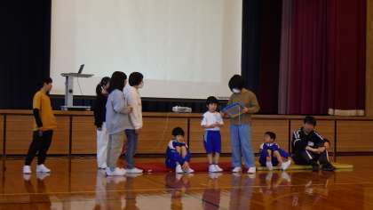 集会では、4・5年生が中心になって準備したゲームを楽しみました。