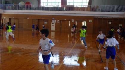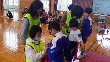 集会の際には、上学年の子供たちが一年生の子供たちを上手にサポートしました。
