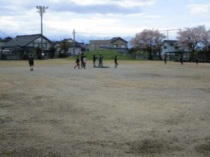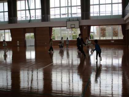 風はやや強いのですが、子供たちは、グラウンドで元気にサッカーをしていました。体育館では、先生と楽しそうにドッジボールをしていました。