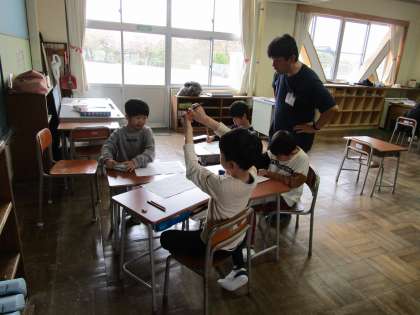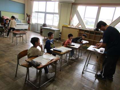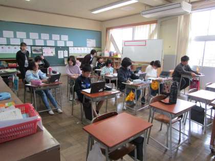 1・2年生が、算数の学習をしていました。5年生は、理科で、天気の学習をしていました。
