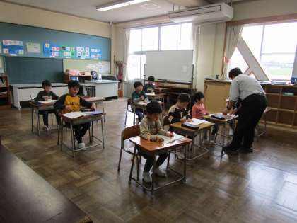 2年生は、丁寧に連絡帳を書いていました。1年生は、お便りを糊で貼っていました。
