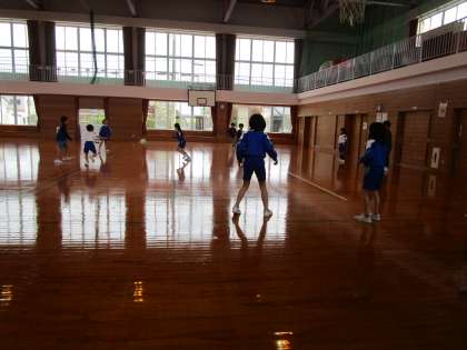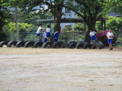 グラウンドではタイヤ遊びや鬼ごっこ、体育館ではドッジボールを楽しんでいました。