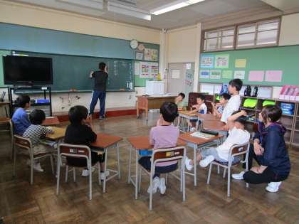1・2年生は、4月からの学校生活について振り返っていました。3年生は、親切や思いやりについて考えを出し合っていました。4・5年生は、働くことの意義について考えました。